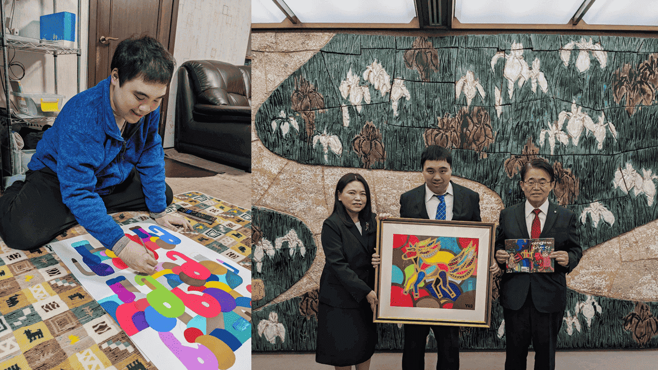 自閉スペクトラム障害と重い知的障害を持つ奥山優さんは、1999年生まれの愛知県小牧市に住むアーティストです。