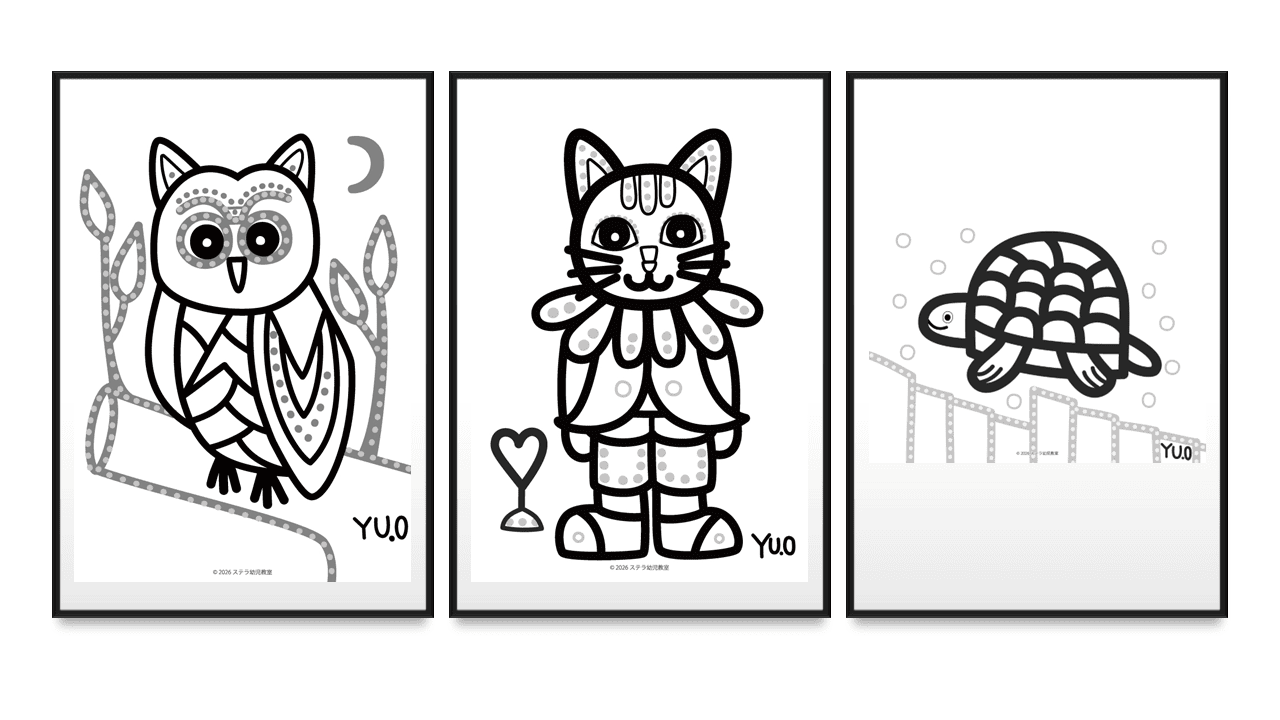 ステラ幼児教室では、子ども一人ひとりに合わせてさまざまな教材を使っています。今回、障害を持つアーティスト、奥山優さんとのコラボぬり絵が教材のひとつに加わりました。
